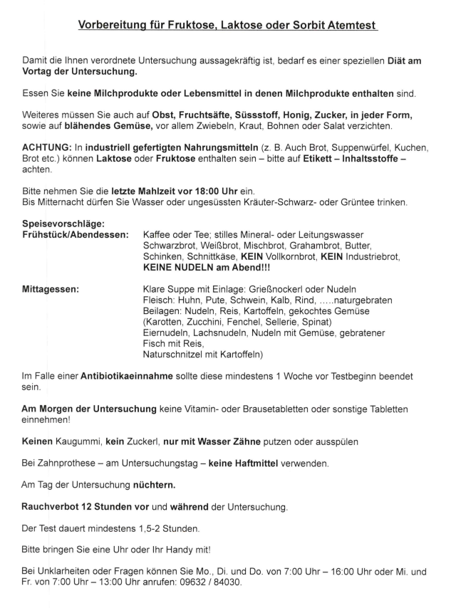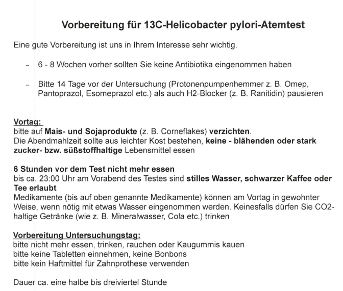 Patienteninformation über die Vorbereitung zur Untersuchung.